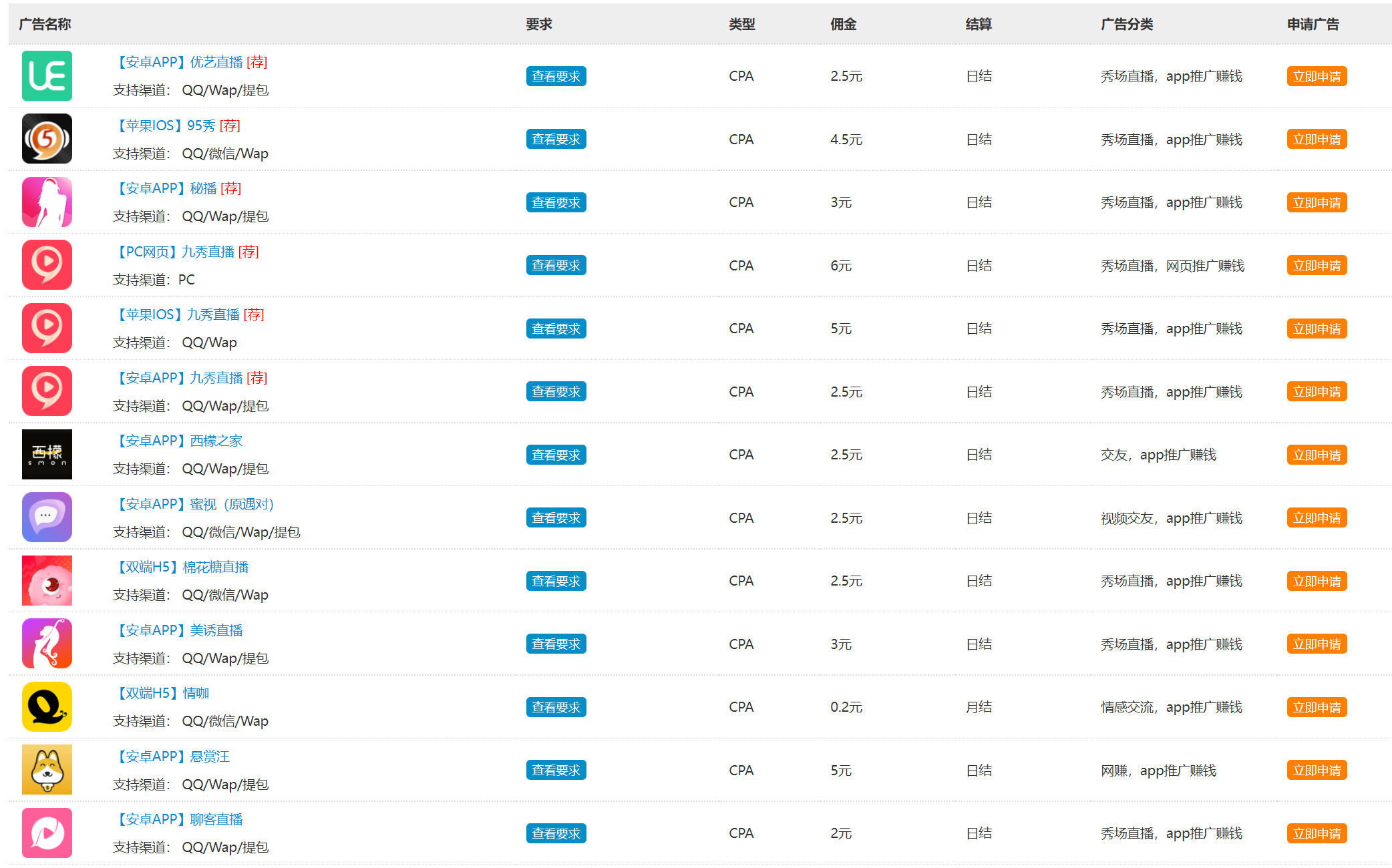 例如我目前做的就是APP拉新,邀请别人注册、安装。每个任务可以得到几元到几十元不等,大家看下图。我们现在做的这个主要是秀场的拉新,别人下载注册以后我们可以得到3元-4.5元(安卓3元,苹果4.5元),今天推广的数据 第二天下午显示。结算是平台官方打款,每天下午点打款,周六周天不结算。我们有全套的方法教程,你加入以后按照教程操作就可以了,可以帮助你快速赚钱,日收入单机200以上。放大操作,收益无上限