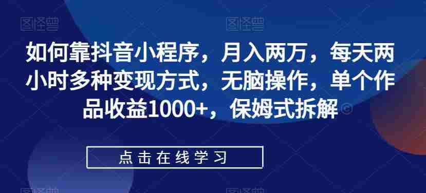如何靠抖音小程序,月入两万,每天两小时多种变现方式,无脑操作,单个作品收益1000+,保姆式拆解