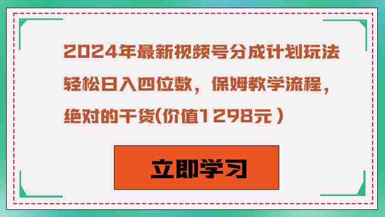 今天给大家带来的项目是《2024年最新视频号分成计划玩法,轻松日入四位数,保姆教学流程,绝对的干货(价值1298元)》,一部手机即可操作该项目,,引流到私域的粉丝还都不算,项目算是一个长期项目,只是玩法一直在升级,给大家更新了最新的玩法,项目是完整的,没有二次收费,请放心观看学习。
