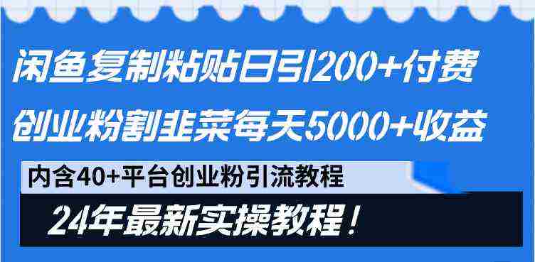 今天来分享一个闲鱼引流玩法,外面有的团队收费5980的闲鱼引流创业粉方法也是24年最新的方法,其中还包含了40多个平台创业粉引流课程,我们自己通过引流创业粉现在变现基本上每天非常稳定基本每天稳定在5000左右的变现,非常夸张,而且及其稳定!