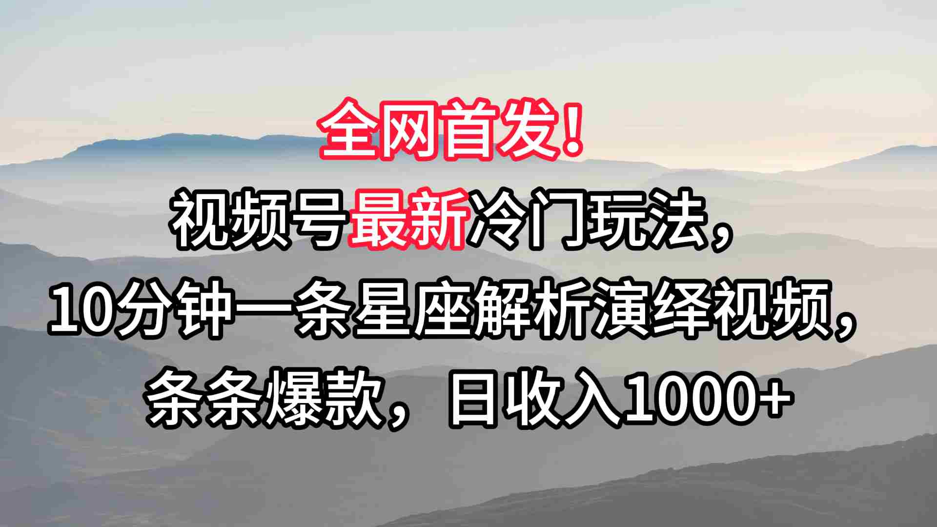全网首发!视频号最新冷门玩法,10分钟一条星座解析演绎视频,条条爆款,日收入1000+