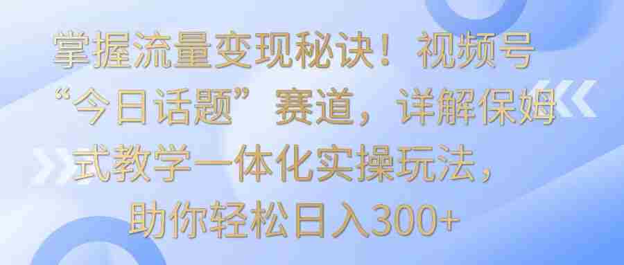 今天给大家带来的项目是(掌握流量变现秘诀!视频号“今日话题”赛道,详解保姆式教学一体化实操玩法,助你轻松日入300+)我们通过制作简单高效能与人共鸣的今日话题改版视频来搞创作分成计划的收益,教学课程简单粗暴,切收益非常可观!