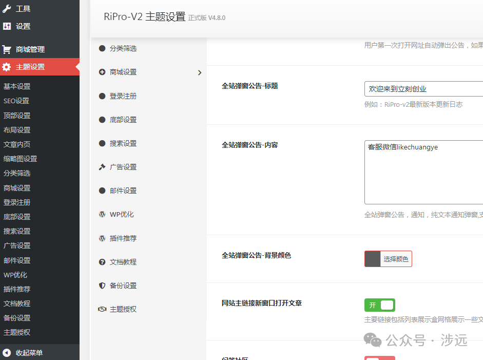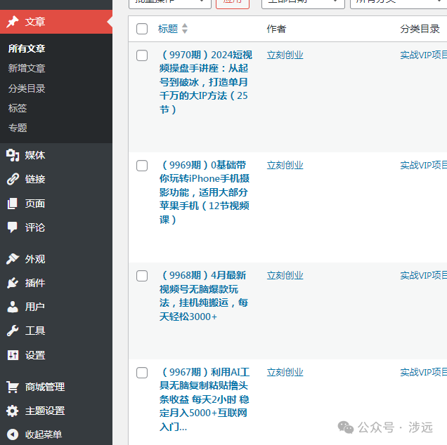 商城管理,这里主要使用的是批量修改所有文章的隐藏内容查看权限,就是没有赞助的设置不让看资源链接的意思,每次更新文章后调整一下。
