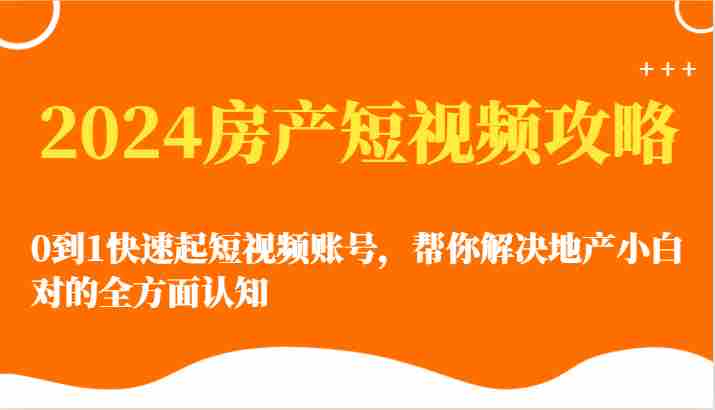 0到1快速起短视频账号,适合地产短视频小白,帮你解决地产小白对的全方面认知。
