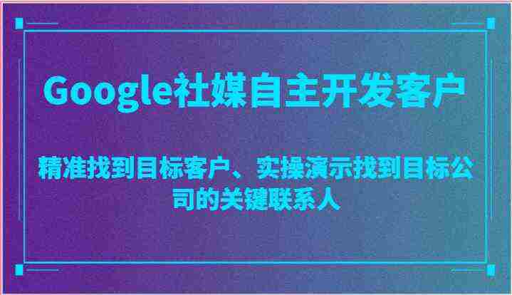 主要内容包括:Google开发客户、领英开发客户、Facebook开发客户、外贸时长调研、外贸SOHO前期准备、精准地找到你的目标客户、实操演示找到目标公司的关键联系人的联系方式。