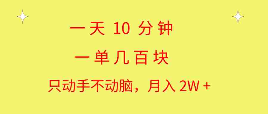 一天10 分钟 一单几百块 简单无脑操作 月入2W+教学
