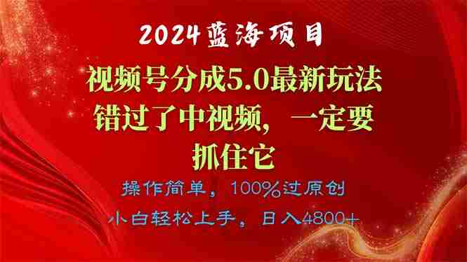 今天给大家带来的项目是《视频号创作者分成5.0玩法,100%过原创,条条爆款,单日1000+》