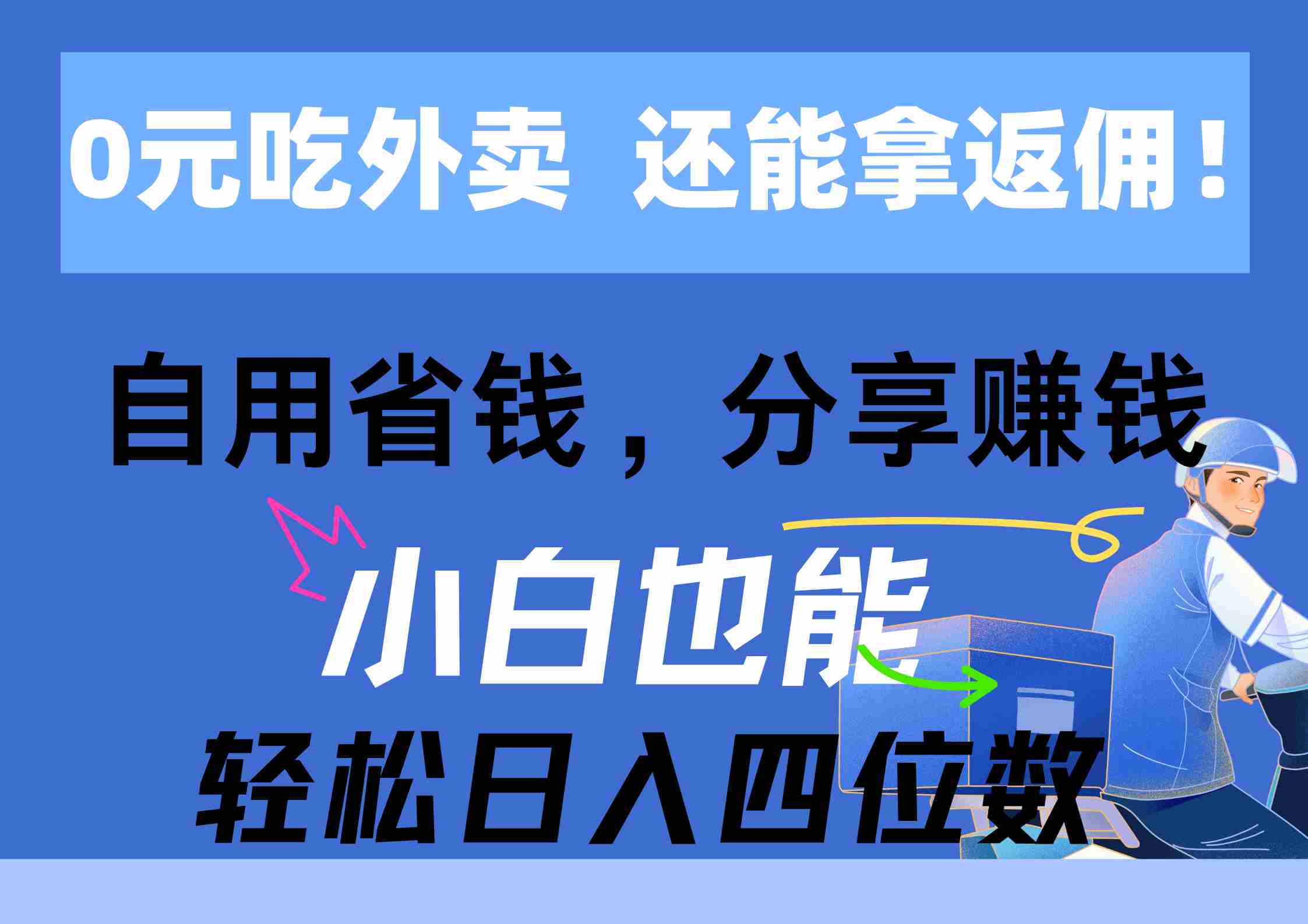 截止到2024年5月,我国网上外卖用户达5.35亿人,比2023年12日增长1372万人,占网民整体的49.6%。从这个趋势来看,对于整个外卖行业来说,是一个巨大的红利。想象一下,只需0-5块钱,就能吃到原价10-25元的外卖,年轻人(尤其是经常点外卖的大学生和上班族)肯定不会错过这种超值的好机会。简单来说就是帮外卖商家做试吃推广,解决新店基础销量、老店增加单量、品牌打万单店的需求。霸王餐不是全免费,指返佣很高,平均佣金35%~100%。自己点外卖,有两处收入,外卖大额红包+cps返佣;分享(推广)可拿额外无限代推广佣金。最重要的是,返佣秒到账,提现秒到账,无提现门槛和手续费!!!(除了霸王餐板块,还有1分购、网购优惠、打车优惠、电影票等板块,吃喝玩乐都能省。)