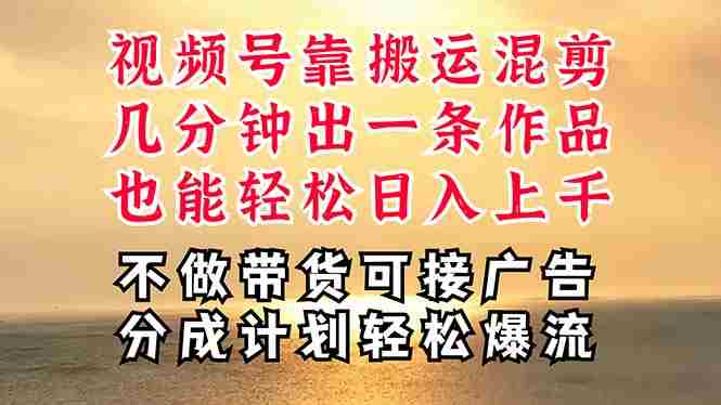 今天给大家带来的项目是【深层揭秘视频号项目,是如何靠搬运混剪做到日入过千上万的,带你轻松爆流变现】