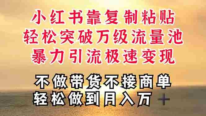 今天给大家带来的项目是【深层揭秘小红书,靠复制粘贴,一周突破万级流量池,无脑搬运,暴力引流,轻松月入过万】