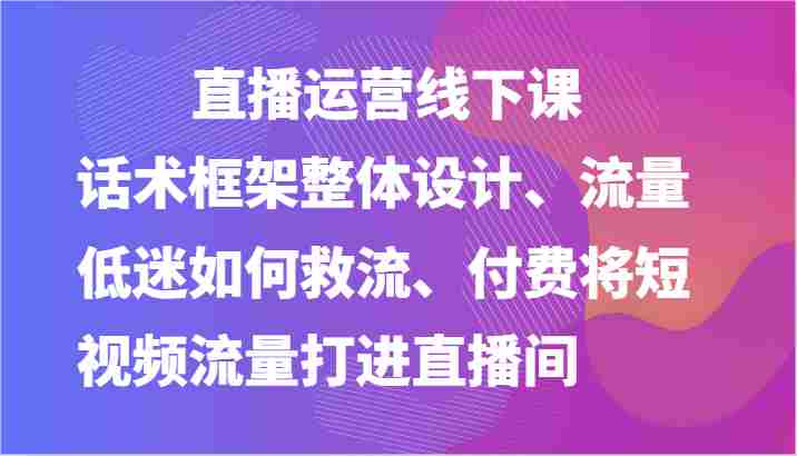 主要内容包括:话术框架整体设计、流量低迷如何救流、付费将短视频流量打进直播间、素材衰退如何打A撞B、调整投放节奏等。