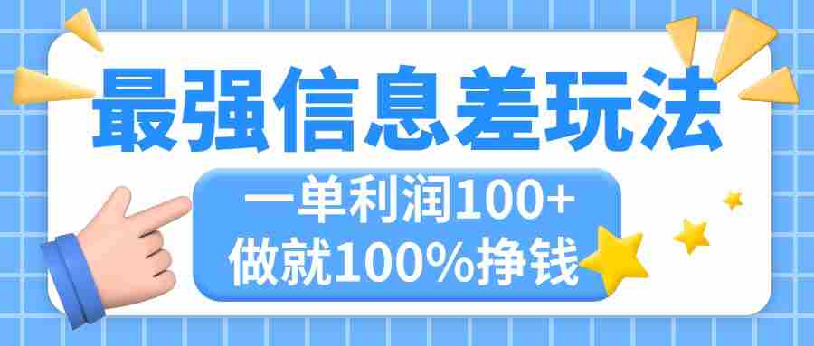 最强信息差玩法,无脑操作,复制粘贴,一单利润100+,小众而刚需,做就100%挣钱