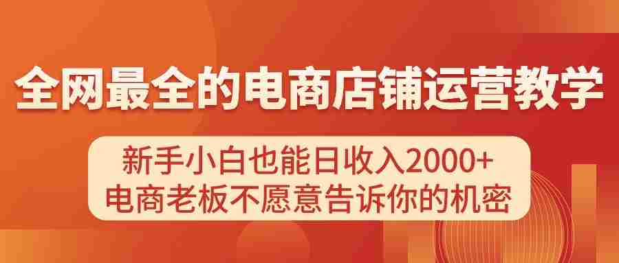 全网最全的电商店铺运营教学,新手小白也能日收入2000+,电商老板不愿意告诉你的机密我来告诉你