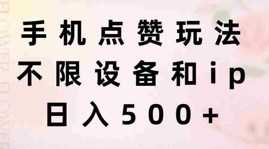 今天给大家带来的项目是《手机点赞玩法,不限设备和ip,日入500+》