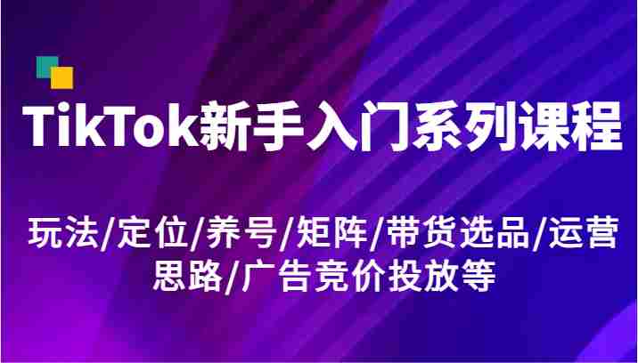 TikTok新手入门系列视频课程。主要内容包括:TikTok主流玩法、账号类型定位、如何养号和布局矩阵、短视频带货选品及运营思路、TK广告竞价投放教程等。