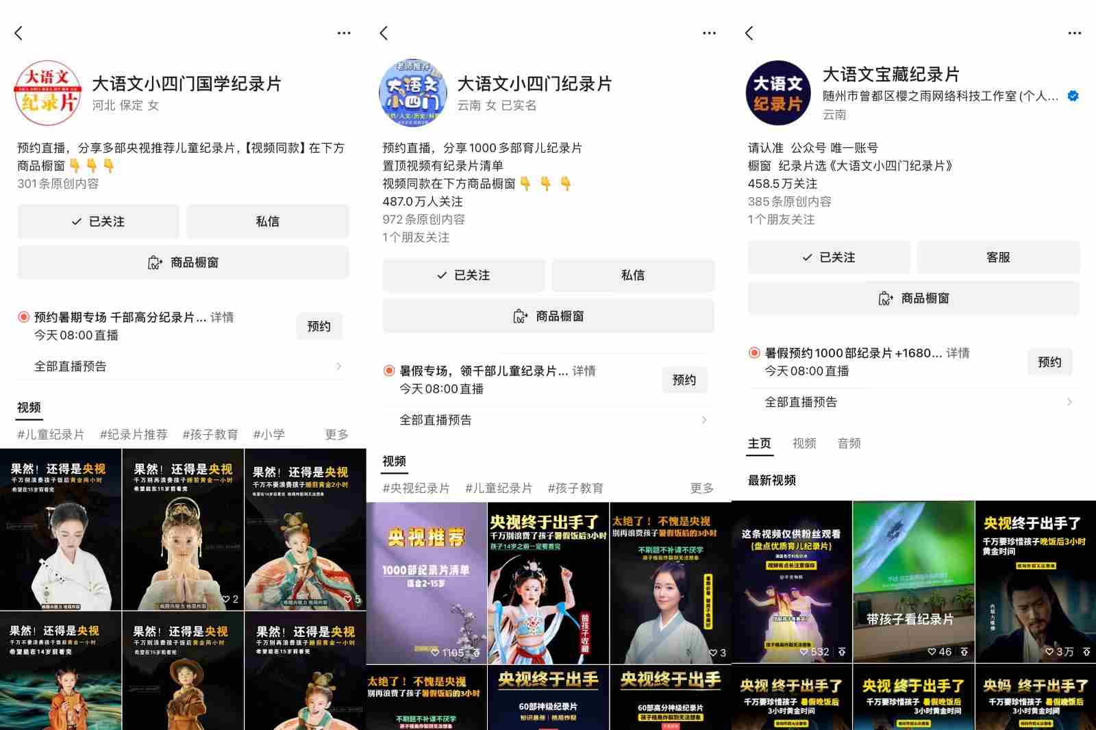 通过剪辑纪录片精彩片段分享出去,并配上经典纪录片的目录,引起家长的共鸣,粉丝量达到100+以后开通橱窗带货,或者直接开播带货,同时开通创作者分成计划,获取广告收益。