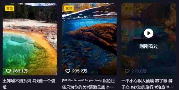 抖音上治愈系风景的视频流量很大,行者看到的这个视频,一个 10 秒的小视频,点赞 268 万,评论 13.6 万,预计播放破亿。
