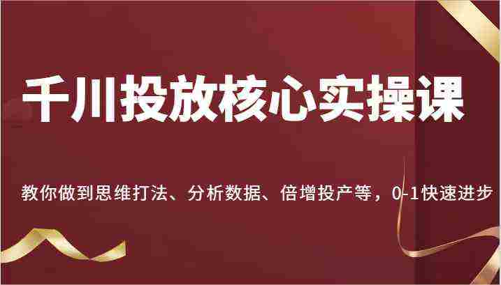 0-1快速进步,新手实战投放,不要过错。教你做到思维打法、分析数据、倍增投产等。
