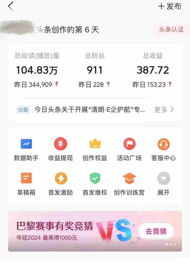 今日头条这个老平台,现在因为AI技术火了新玩法。简单来说,就是用AI软件把别的平台的文章或视频变成自己的原创,然后放到今日头条上。只要有人看,就有收益。这个玩法门槛超低,不用有多少粉丝,新号也能直接上手,一部手机直接搞定。保姆级教程看完即可上手操作,可矩阵操做放大收益,轻松日入1000+