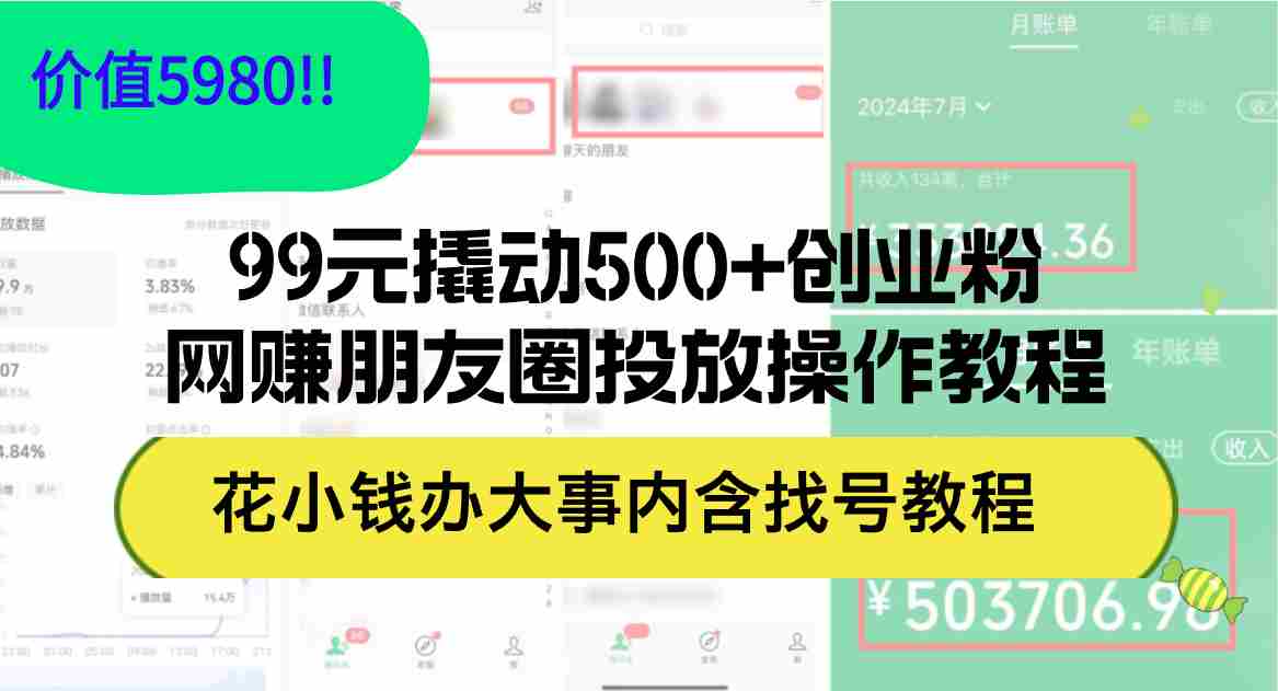 今天给大家拆解一个某网赚大咖课程,通过99元撬动500+创业粉的一个实操的方法教程,很多人做网赚获客的投放只知道做自然流,但是自然流也就意味着及其的不稳定,不如付费流量来的稳定