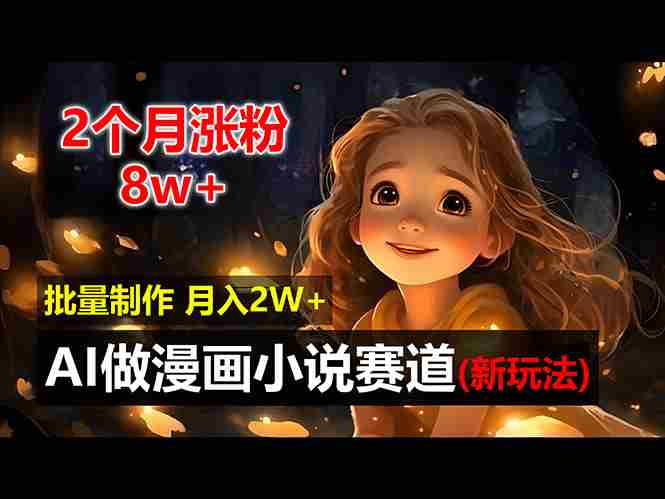 2个月的时间,涨粉8万+,几乎每条视频播放量都在几万甚至几十万以上。利用AI工具,把小说内容以漫画的形式进行推广,由于视频沉浸感特别强,导致视频完播率特别的高。预计一个月仅靠平台广告分成就可以赚到2w以上。