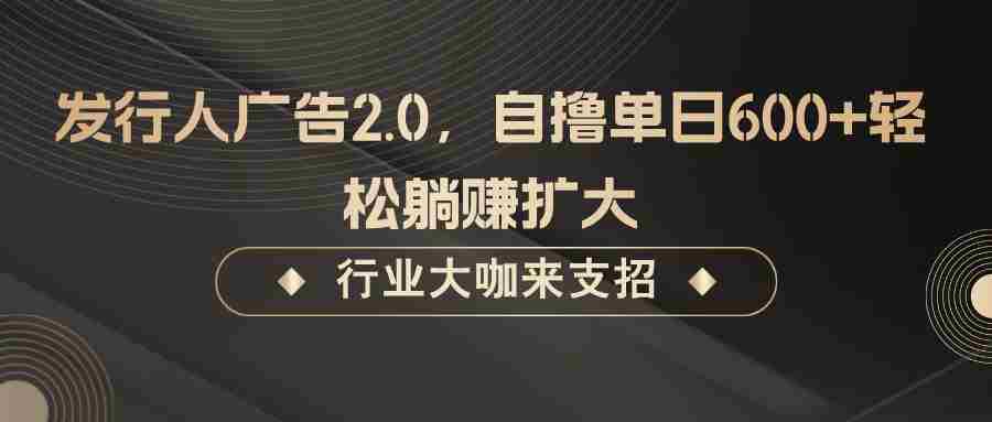 广告自撸一直是副业福音,无需任何成本即可实现日入600+的躺赚收益,之前遇到过的黑广三兄弟已经完美解决,抖音发行人广告进入2.0时代