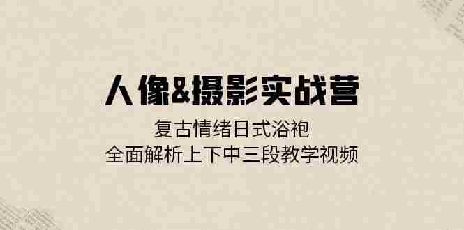 这是一个人像摄影实战训练营的课程列表,包含了多个主题的人像摄影教学视频,每个主题都分为上、中、下三个部分,涵盖了复古情绪、日式浴袍、闪灵主题、游乐园、日系胶片、复古光影、古风人像、赛博朋克、JK制服以及影棚闪光灯等多个摄影风格与技巧。