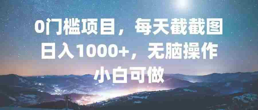 0门槛项目,每天截截图,日入1000+,轻松无脑,小白可做