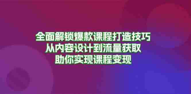 全面解锁爆款课程打造技巧,帮助学员从零开始打造爆款课程矩阵,课程内容涵盖了选题论证、课程定位、内容设计、知识挖掘、导师形象打造、流量获取等多个方面。