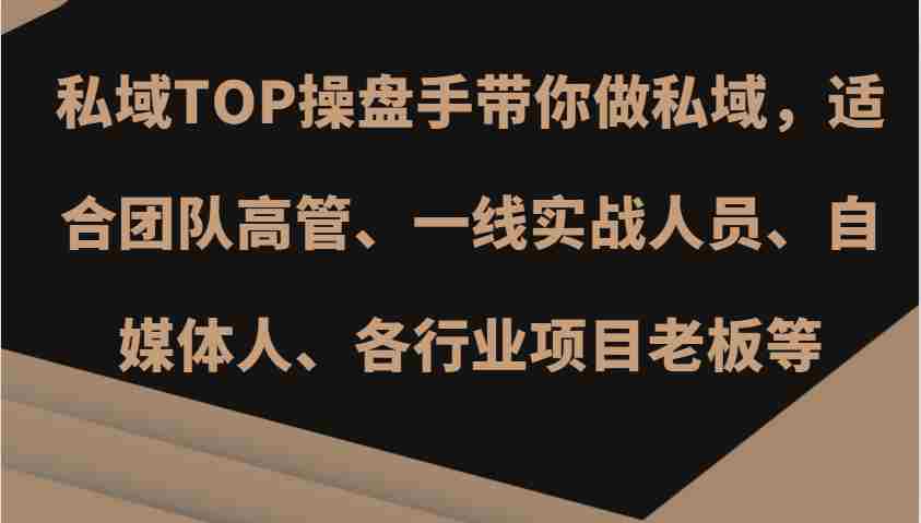 适合人群:私域项目操盘手、私域直营团队老板、私域团队高管、私域一线实战人员、电商老板、网红博主、自媒体、全行业实体老板、私域新手、企业职业、经理人、资源方、品牌方、各行业项目老板等。