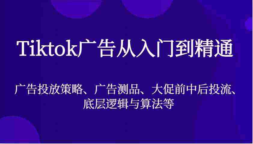 Tiktok广告从入门到精通。不同阶段广告的投放策略、利用tiktok广告测品、大促前中后如何投流、底层逻辑与算法等。