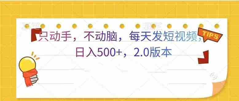 简介:大家好,今天给大家带来变现小项目.只动手,不动脑,每日刷刷短视频,日入500+,2.0版本