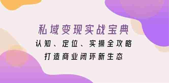 该内容是一套私域变现实战宝典课程,包括认知篇、定位篇和实操篇。认知篇主要讲解私域的概念、重要性和变现方式;定位篇讲解如何在私域布局赚钱的商业模式,并结合产品进行定位;实操篇则详细讲解了私域IP设计、产品设计、用户管理、朋友圈内容规划、流量转化、社群运营和公域流量撬动等实操技巧。