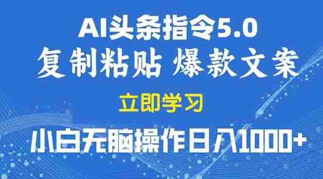 头条5.0最新玩法!简单零成本!复制粘贴即可,不需要动脑子,不需要剪辑,AI指令,,复制粘贴即可,简单无脑,保姆级教学轻松日入1000+