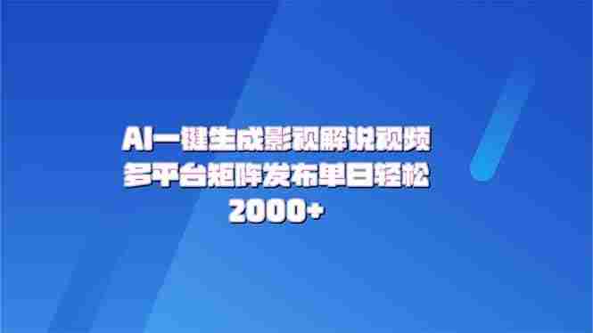 「AI一键生成影视解说视频,多平台发布,轻松日入2000+」过去制作这样的长视频,通常需要配合多个工具才能完成。现在,只需一个AI工具,就能轻松搞定所有步骤。