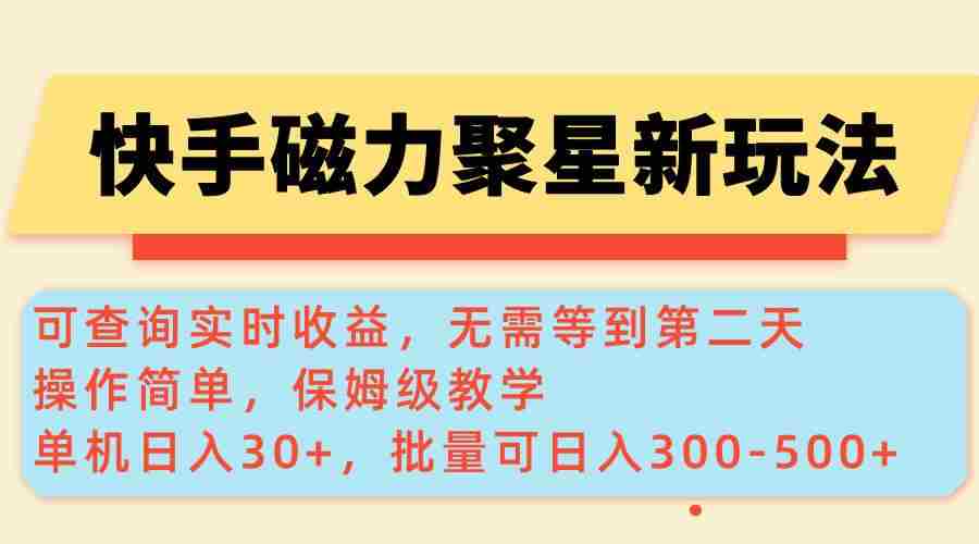 这个项目简单来说,就是通过快手的“磁力聚星”功能通过直播或者发视频去推广游戏。然后自己拿手机看小游戏广告来赚取收益,操作非常简单,提供保姆级教学。每天轻轻松松单机30+,手机批量一天能够赚取 300 到 500 元,简单无脑,非常适合小白的一个项目。而且不同于以前的玩法,收益需要等到第二天更新,现在提供实时查询的渠道,随时都知道自己每台手机收益多少。