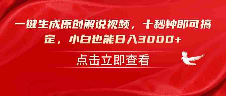 一键生成原创解说视频,十秒钟即可搞定,小白也能日入3000+
