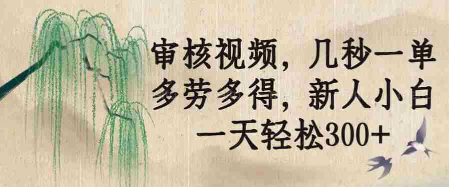 今天给大家带来的项目是《审核视频,几秒一单,多劳多得,新人小白一天轻松300+》