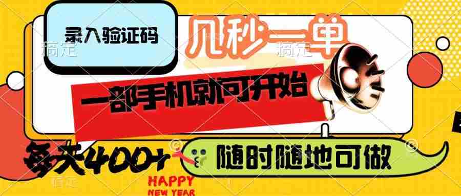 录入验证码,几秒一单,随时随地可做,只需一部手机就可开始,每天400+