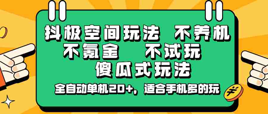 自从去年抖极风控以后,一直没更这个项目,今年新口子来了,新出的这个空间玩法,非常简单无脑,只需要挂机就能产出单机20+的收益,非常无脑简单,适合手机多的人,批量搞,必须用华为手机才行