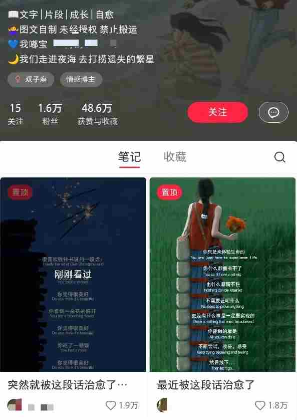 小红书治愈文案图文笔记,零门槛,一分钟制作轻松制作爆款作品月入万元