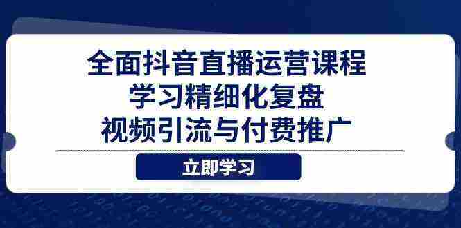 课程全面覆盖账号周期管理、流量模型分析、团队协作、直播间排品及主播能力提升等内容。学员将学习精细化复盘、视频引流技巧及多种付费推广工具(混合投放、随心推、DOU+、千川)的使用,实现优化直播间表现、降低成本、提升GMV的目标。
