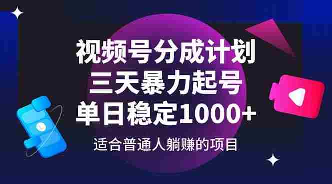 视频号分成计划,三天暴力起号玩法 单日稳定1000+