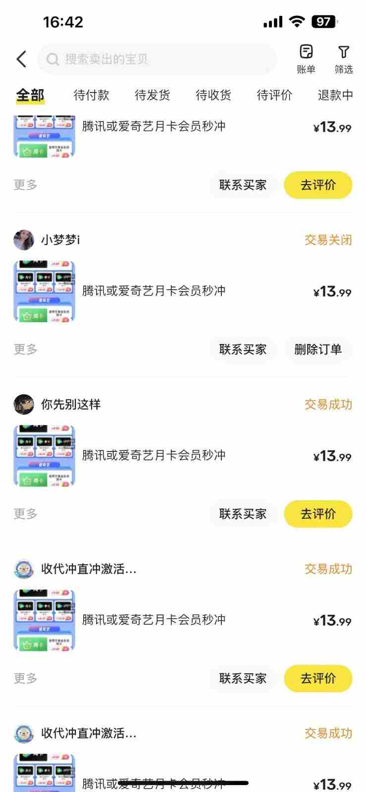 闲鱼的出单非常OK,基本上架没多久就会有出单