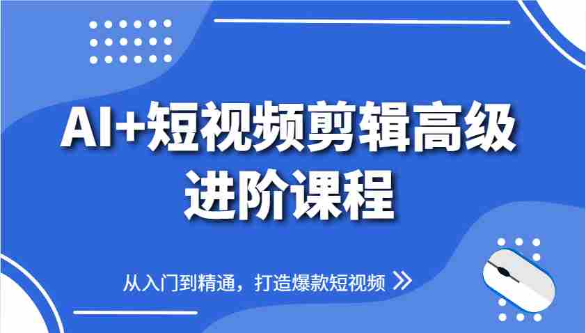这是一套“AI+短视频剪辑”高级进阶课程。涵盖AI工具从简介到实操,如用DeepSeek生成关键词、AI制作婚纱照片等;剪映基础操作与案例制作,像抠像、调色、关键帧运用,以及古风美景、萌娃特效等热门视频打造;还有账号运营、直播技巧,橱窗商品添加等内容。助力学员从入门到精通,打造爆款短视频。