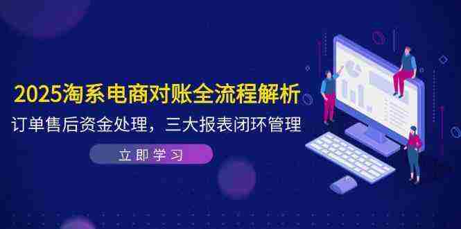 本课程系统讲解2025年淘系电商财务对账全流程,包含订单处理、售后管理、资金流水核对等核心模块,涵盖数据导出路径、字段解析、收入成本确认、费用核算、动态匹配回款等关键环节,最终通过三大核心报表(单品收入成本表/资金汇总表/经营利润表)及发票管理实现电商财务闭环管理。