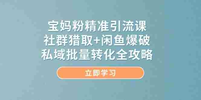 课程系统讲解宝妈粉精准引流方法论,涵盖社群猎取、诱饵设计、闲鱼爆破、IP价值输出及私域批量运营,通过高转化技巧实现本地母婴粉引流裂变,打造可持续变现的私域流量池。