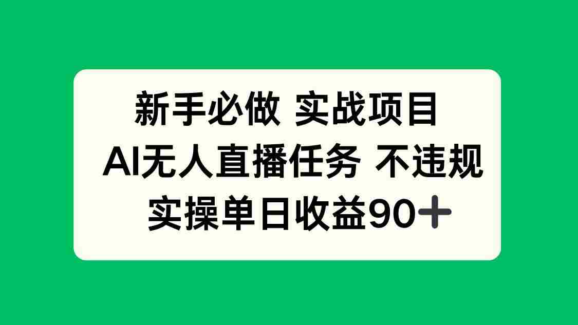 新手必做实战项目,AI无人直播任务不违规,实操单日收益90+