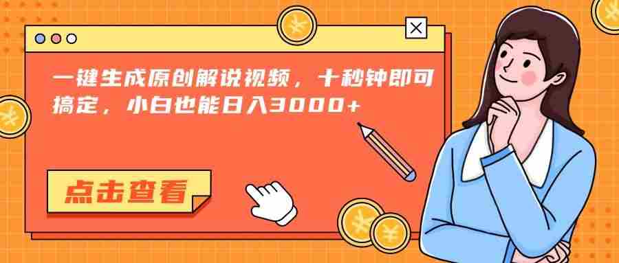 一键生成原创解说视频,十秒钟即可搞定,小白也能日入3000+