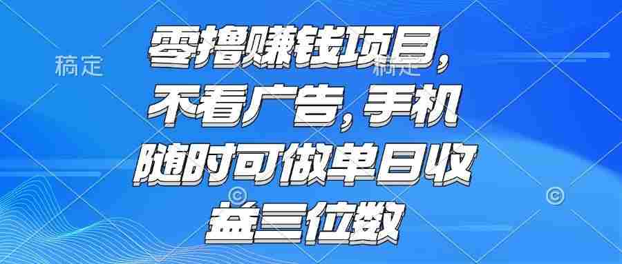 零撸赚钱项目 不看广告 手机随时可做 单日收益三位数